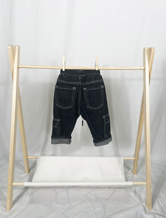 €25,99 EURSaldi €9,99 EUR( stagione autunno inverno ) Jeans fisso in cotone modello cargo street. Elastico e coulisse in vita. Cuciture a contrato. Composizione: 100% cotone Tabella taglie 12...61% OFF -