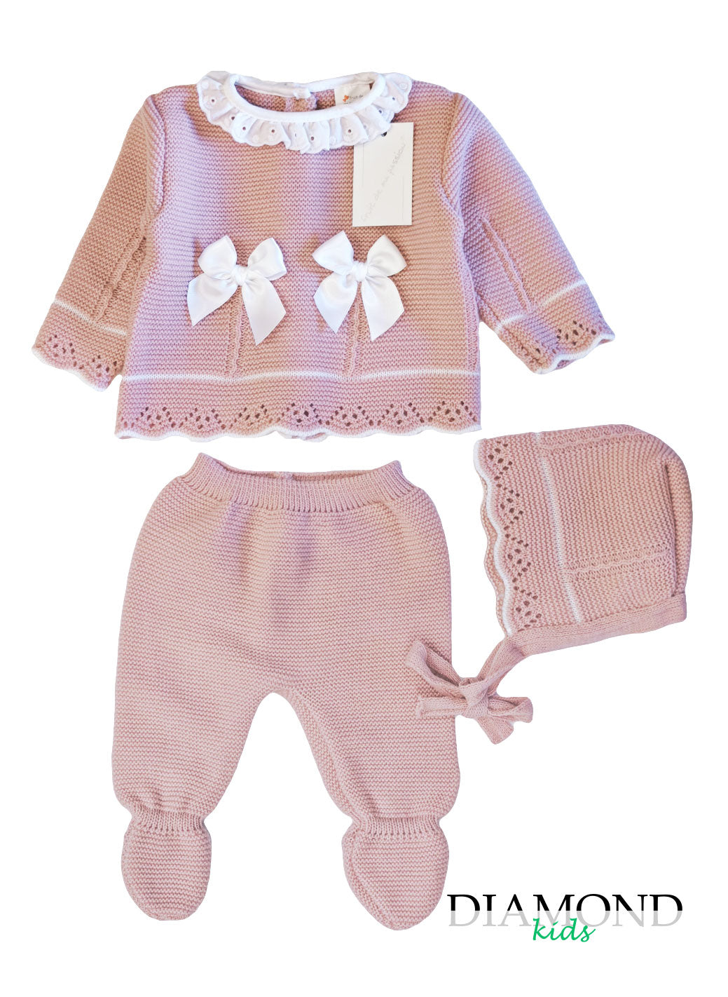 Maglia con collo merlettato, manica lunga, orli ondulati, trama e fiocchi.