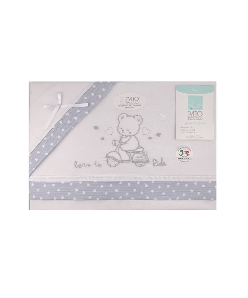 Misure: Lenzuolo sopra 80x115 cm - Sottolenzuola 35x75+10cm - Federa cuscino 30x40 cm.